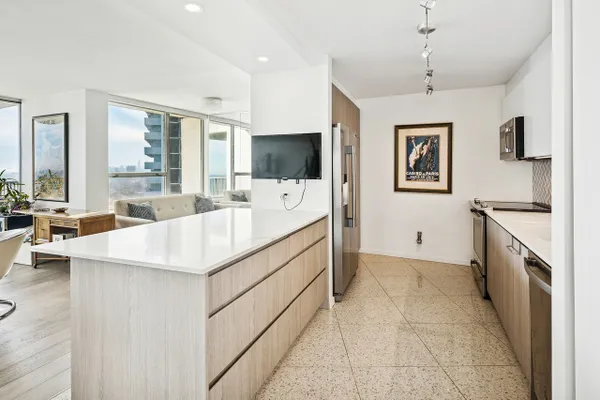 Stunning! Renovated 42nd floor penthouse in lakefront's East Point Condominium. This is the architectural gem with the elegant, curved facade. Located in the coveted B tier, this 2-bed 2-bath condo has sweeping views of Lake Michigan and Chicago's iconic skyline. The contemporary open floor plan provides unobstructed water views from all of the main rooms. The large balcony is a plus for enjoying the views and outdoors. Neutral tones and quality finishing materials provide the perfect nature-inspired interior design. Terrazzo floors flow through the kitchen, foyer, hallway and 2nd bathroom. The modern open kitchen has white-lacquered upper cabinetry, tan lower cabinetry with drawers, a herringbone/marble backsplash, stainless steel appliances (Frigidaire Professional Series refrigerator, GE ovens and dishwasher), and quartz countertops. Each bedroom has lake views and a large walk-in closet. The primary bathroom boasts a beautiful marble floor, tub/shower, and modern white fixtures. There is laundry hook-up in the foyer closet, a tankless hot water heater and low-profile electric GE heating/cooling units in addition to radiant heat. Amenities include a 24-hour front door staff, exercise room, library, party room, and rooftop swimming pool. Indoor parking is available to lease. Andersonville/Edgewater amenities, N. Broadway restaurants, Hollywood beach, Whole Foods and health clubs are all close by. This gorgeous condo is move-in ready; there is nothing else like it!